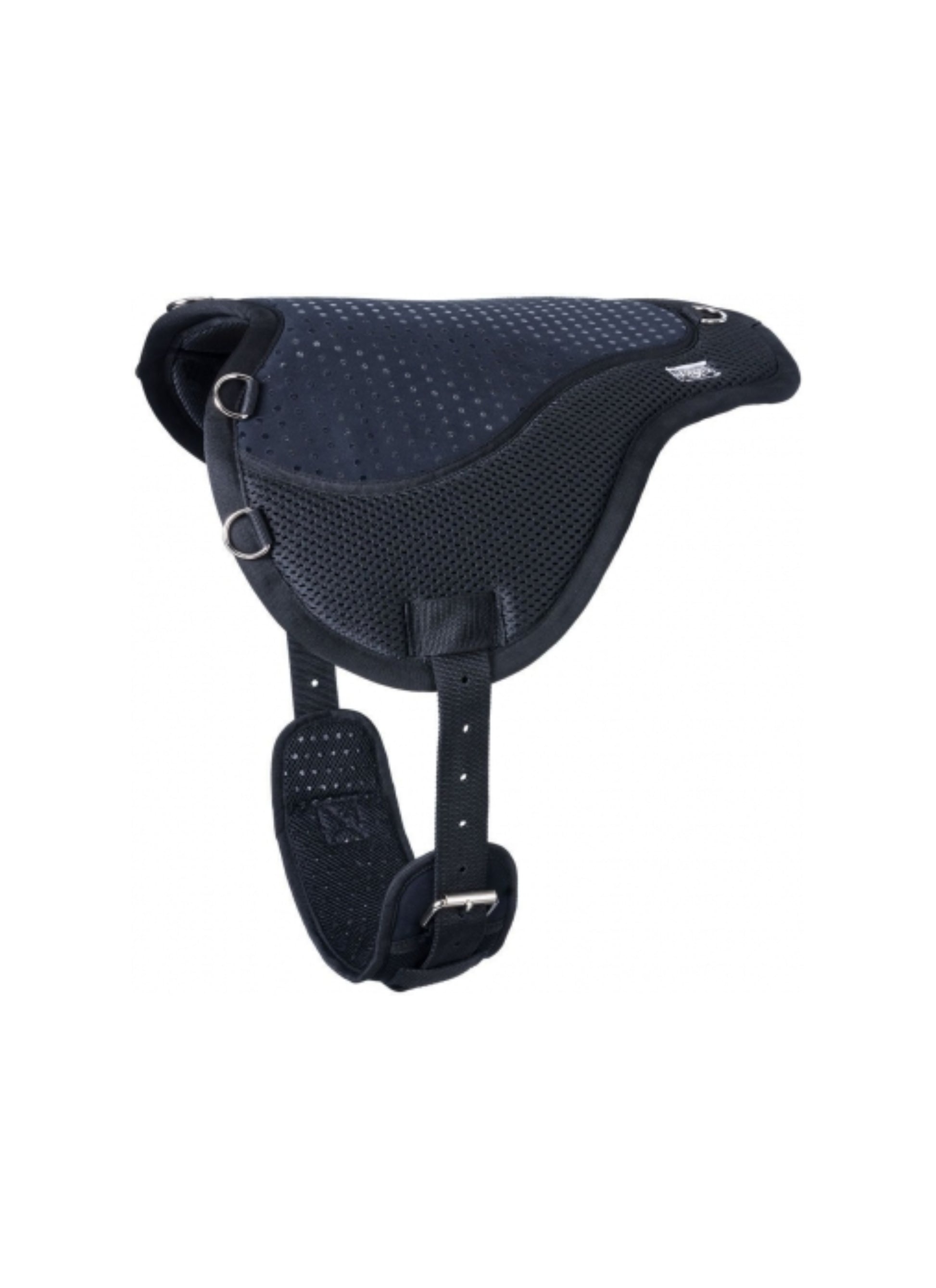 Un excellent coussin à cru pour faire le tour de la ferme ou sur le sentier. Garde votre pantalon propre tout en offrant un coussin pour vous et votre cheval. Une maille épaisse et respirante non compressible constitue le corps principal de ce coussin à cru avec un patch en daim et du silicone.