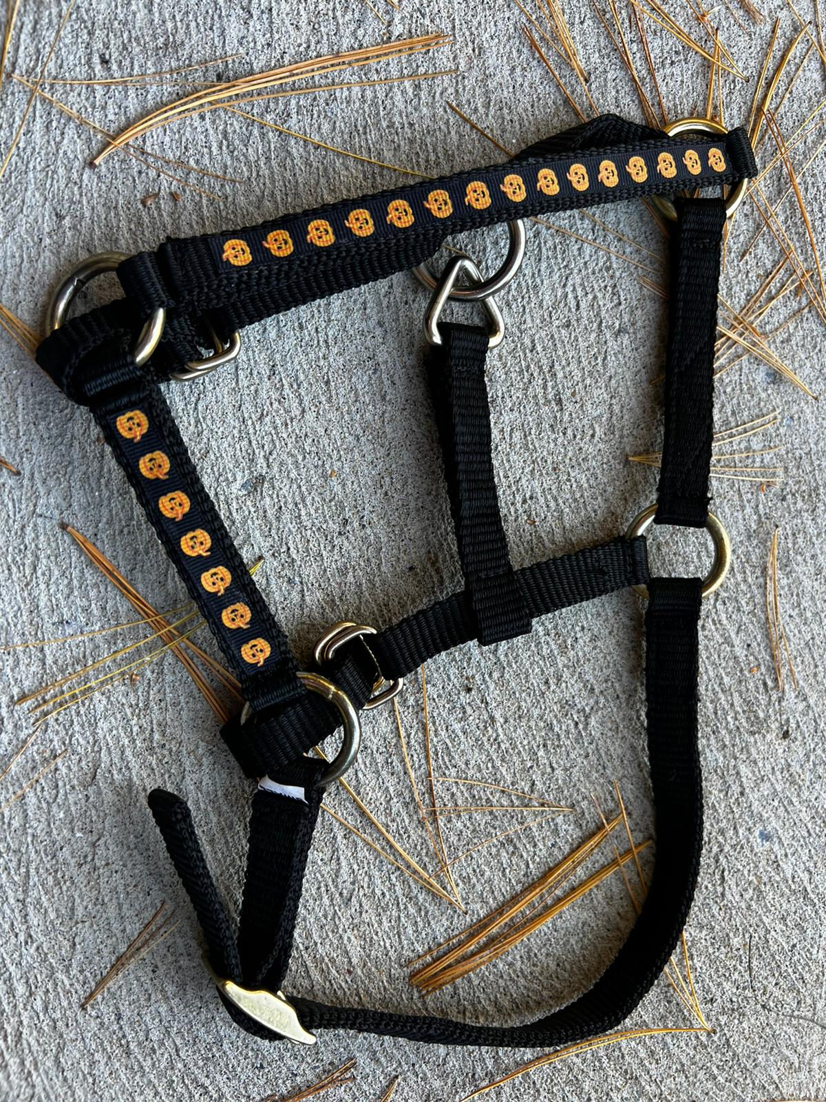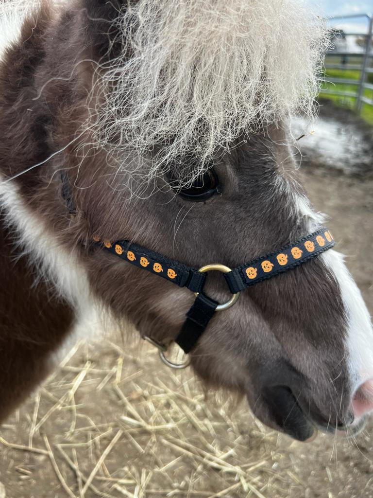 Avec ce licol en édition limitée, votre cheval est prêt pour Halloween ! Offert exclusivement chez For the Love of Minis, nous avons ajouté des détails effrayants et accrocheurs.