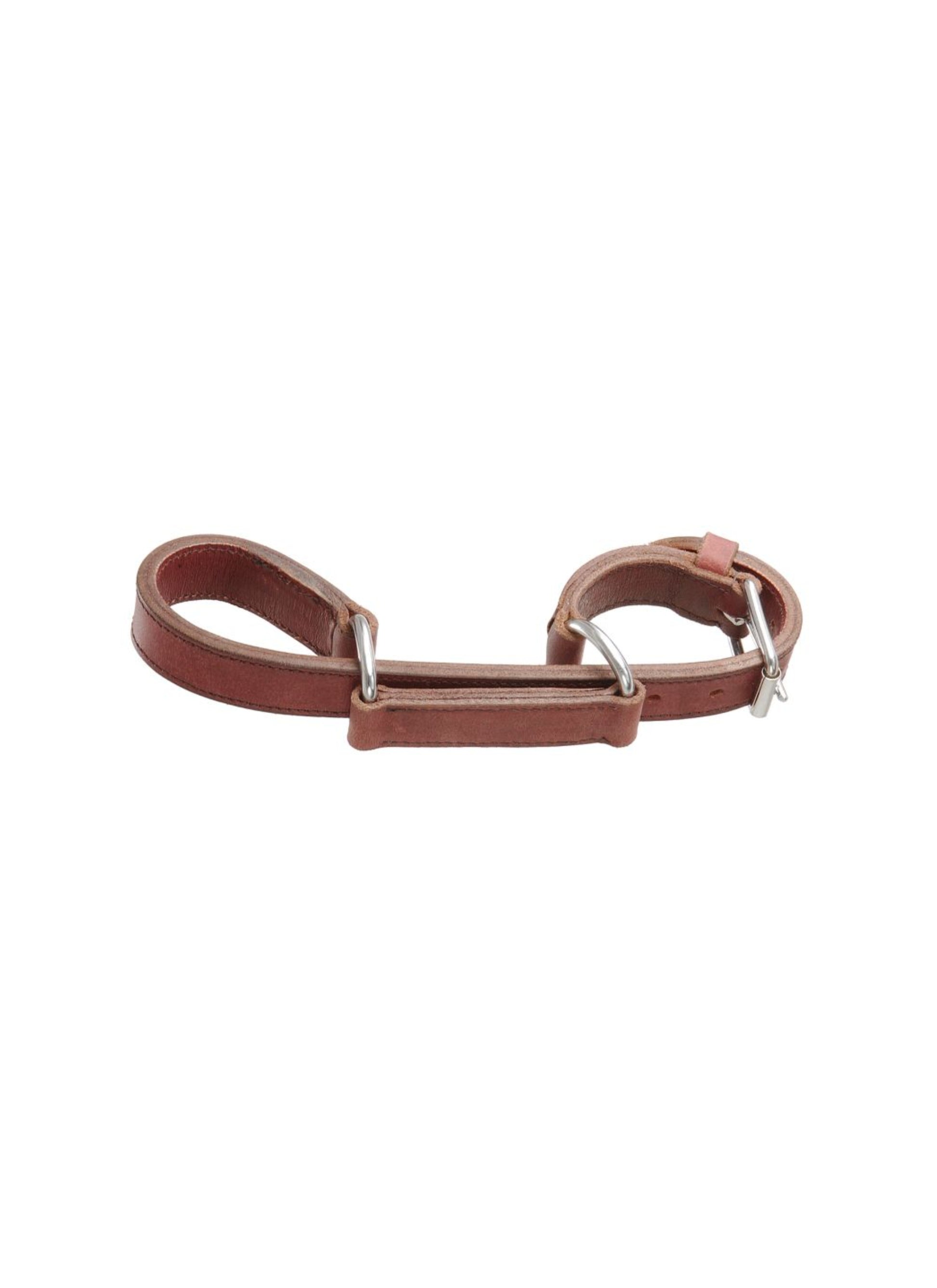 Les entraves restreignent le mouvement vers l'avant d'un cheval et sont couramment utilisées en camping pour empêcher un cheval de s'égarer et par les entraîneurs de chevaux pour familiariser un cheval avec une pression sur ses jambes. Ces entraves sont fabriquées en cuir épais et doubles coutures pour plus de solidité. Comprend une quincaillerie en nickel de qualité avec boucle à rouleau pour des ajustements faciles. 1 1/2" de large À utiliser avec prudence et une bonne supervision. Les chevaux peuvent perdre l'équilibre, tomber, reculer ou sauter lorsqu'ils réagissent à la pression de l'entrave, ce qui peut blesser le cheval et le manieur.