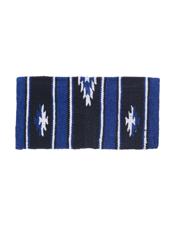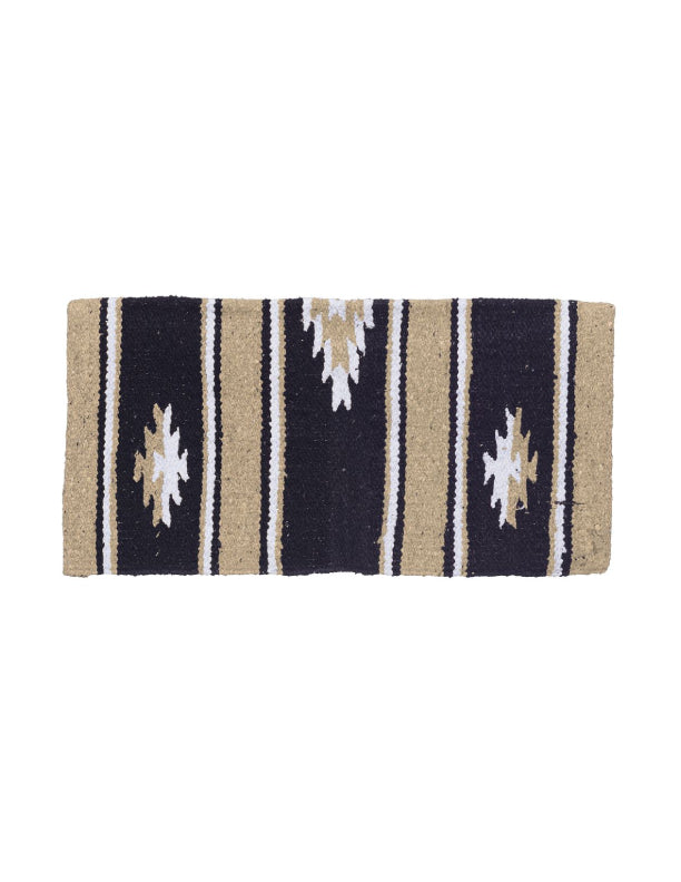 Cette couverture de selle économique est tissée à la main à partir d'un mélange d'acrylique et présente des motifs Navajo de style traditionnel dans une grande variété de belles couleurs. Son poids fin à moyen en fait un choix abordable et de qualité pour mettre sur ou sous votre tapis de selle miniature.