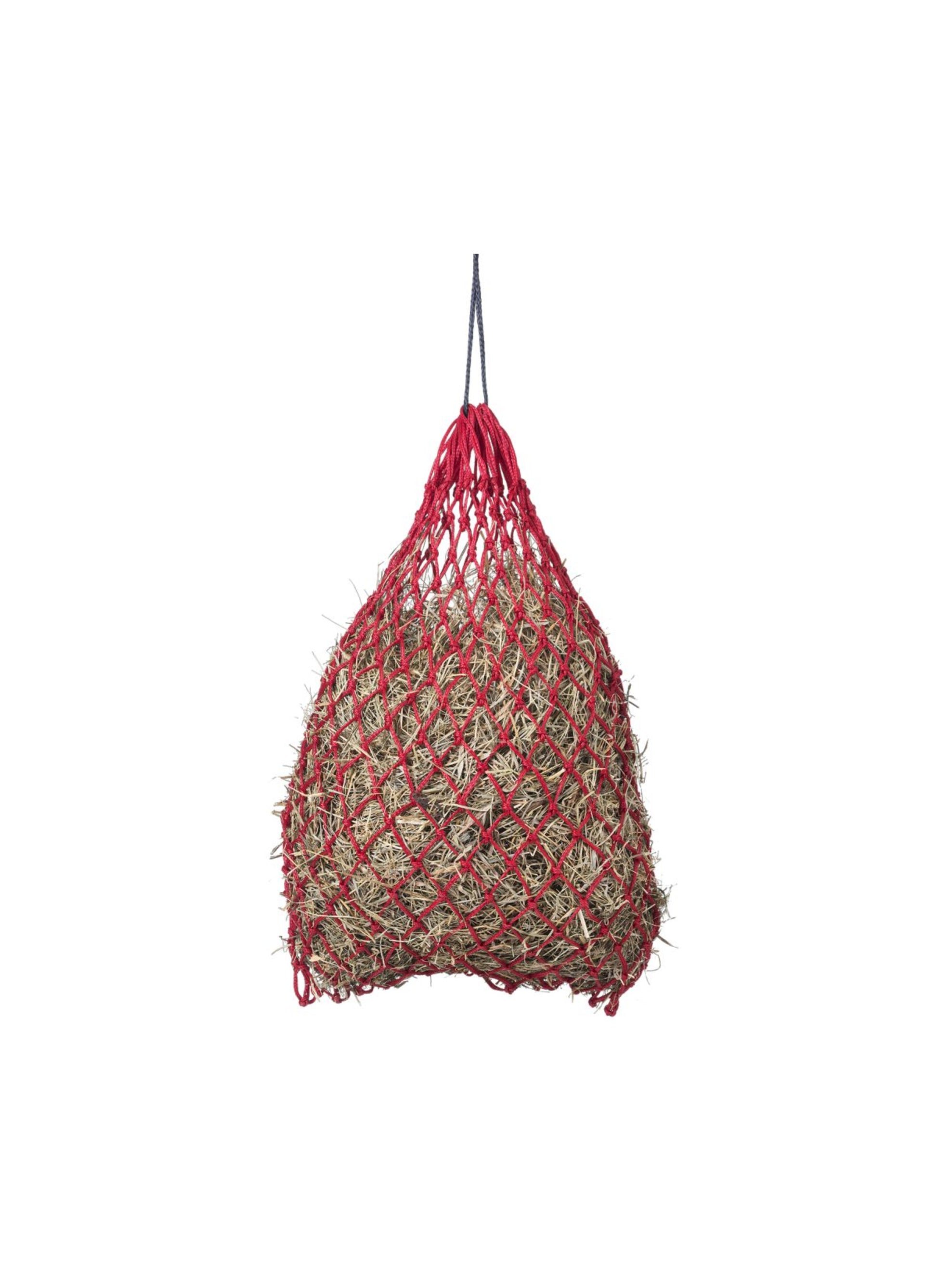 La taille de 76,2 cm contient beaucoup de foin pour garder votre cheval occupé au spectacle, au camping ou à la remorque. Fabriqué avec le cordon de foin en poly le plus solide pour une utilisation plus longue. Le style noué a 2 x 2 ouvertures carrées pour que votre cheval mange plus lentement et cause moins de dégâts. .