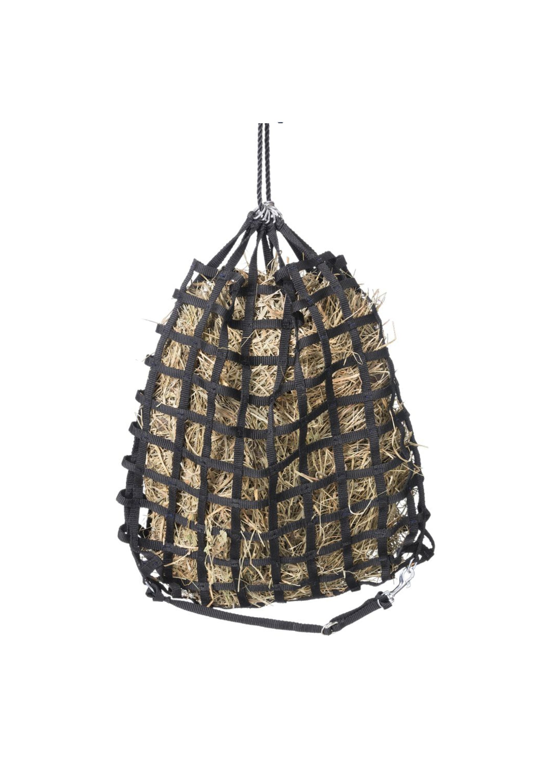 L'ensemble du sac est fabriqué à partir de sangles de 1/2" dans de petites ouvertures de 2"x2". Le dessus à cordon de serrage rend ce sac facile à charger et à accrocher.